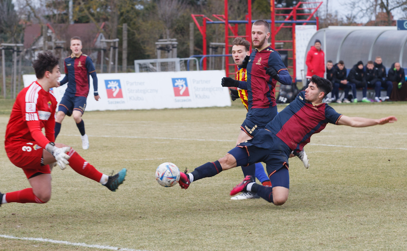 Szczecinianie, choć zagrali praktycznie bez ekstraklasowych wzmocnień, mieli dużą przewagę i stworzyli sobie wiele podbramkowych sytuacji, dwukrotnie trafiając w poprzeczkę i nie wykorzystując rzutu karnego, a rywale oddali praktycznie tylko jeden groźny strzał, który pewnie obronił Maciej Kowal.