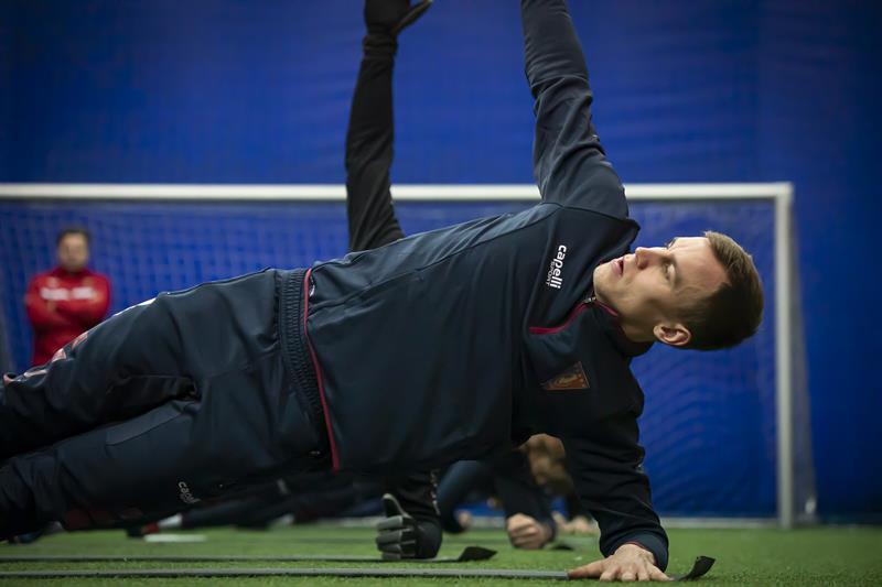 Na zdjęciu: Na treningu w Football Arenie pozyskany zimą z Legii Warszawa Paweł Stolarski