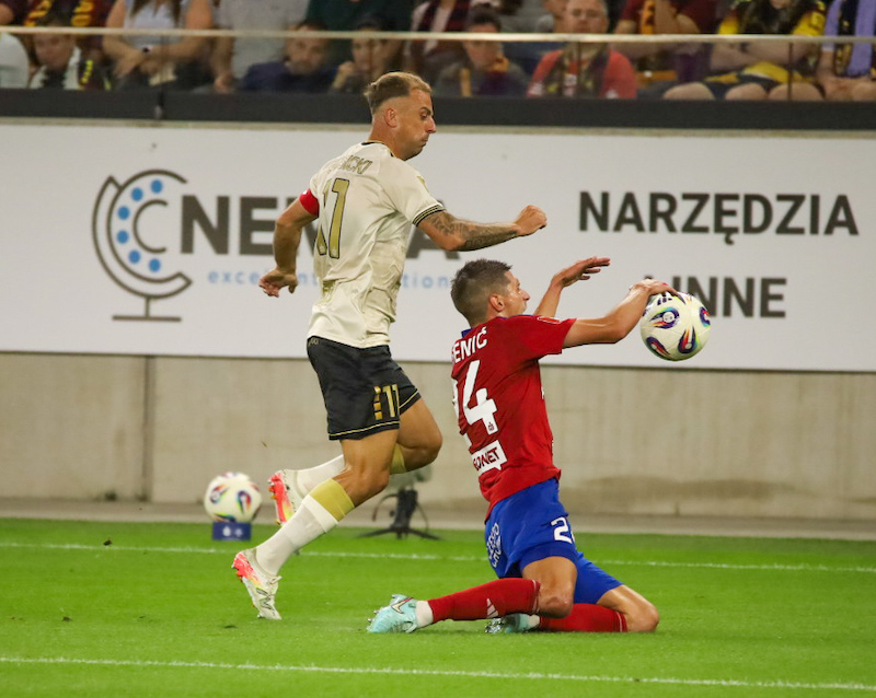 Na pożegnanie wakacji w niedzielną noc szczecinianie zasłużenie pokonali uczestnika fazy grupowej Ligi Konferencji Europy, choć mecz nie obfitował w podbramkowe akcje, lecz był bardziej piłkarskimi szachami i to nawet z taką roszadą, że Jose Pozo wystąpił w roli wysuniętego środkowego napastnika. W drugiej połowie w granatowo-bordowych barwach zadebiutował pozyskany w ubiegłym tygodniu z Leeds United Anglik Sam Greenwood i dwa razy świetnie wychodził na pozycje, lecz nie został obsłużony przez nowych partnerów, więc w doliczonym czasie postanowił sam wziąć sprawy w swoje ręce i wypracował gola, który przypieczętował zwycięstwo portowców.