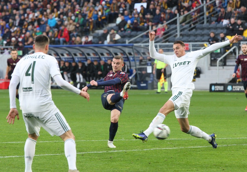 Druga połowa zaczęła się od doskonałej okazji w 48 minucie Zahoviča, który minimalnie z prawej strony przestrzelił. Pięć minut później podobną akcję, ale z drugiej strony, słoweński napastnik wykorzystał i dał prowadzenie Pogoni, które trwało kilkanaście sekund, ponieważ zaraz po wznowieniu gry po centrze Štigleca, Makowski głową pokonał Stipicę.
