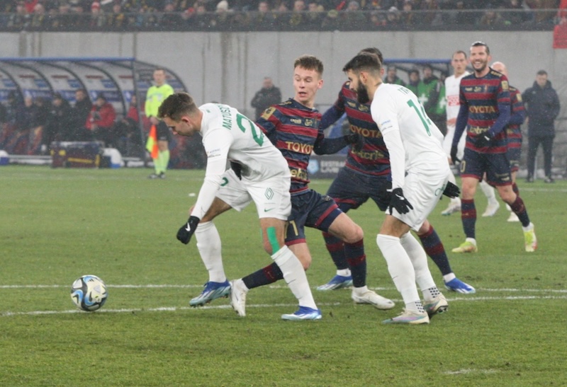 W fatalnej końcówce, którą można nazwać kolejnym obliczem granatowo-bordowych, szczecinianie pokazali, że nie potrafią się bronić przy stałych fragmentach gry i w 82. minucie po dośrodkowaniu z rzutu wolnego, stojący między Zechem i Malcem Stavrópoulos, głową zdobył kontaktową bramkę. Nie pomogło wprowadzenie trzeciego stopera Lisowskiego i jeszcze jednego obrońcy (Borges zastąpił Koútrisa, który był świetny w ofensywie, ale w obronie popełniał błędy, podobnie zresztą jak Wahlqvist na prawej stronie defensywy, a za to Szwed... dwukrotnie był bliski gola jako środkowy napastnik), bo na początku doliczonego czasu Szmyt po indywidualnej akcji w sytuacji sam na sam doprowadził do wyrównania, podobnie jak to było niedawno w pucharowej potyczce z Górnikiem Zabrze. W piątek nie było jednak dogrywki i pojedynek, który chyba lepiej kondycyjnie wytrzymali poznaniacy (obie drużyny grały we wtorek w Pucharze Polski), zakończył się remisem, z którego oczywiście bardziej cieszyli się goście.