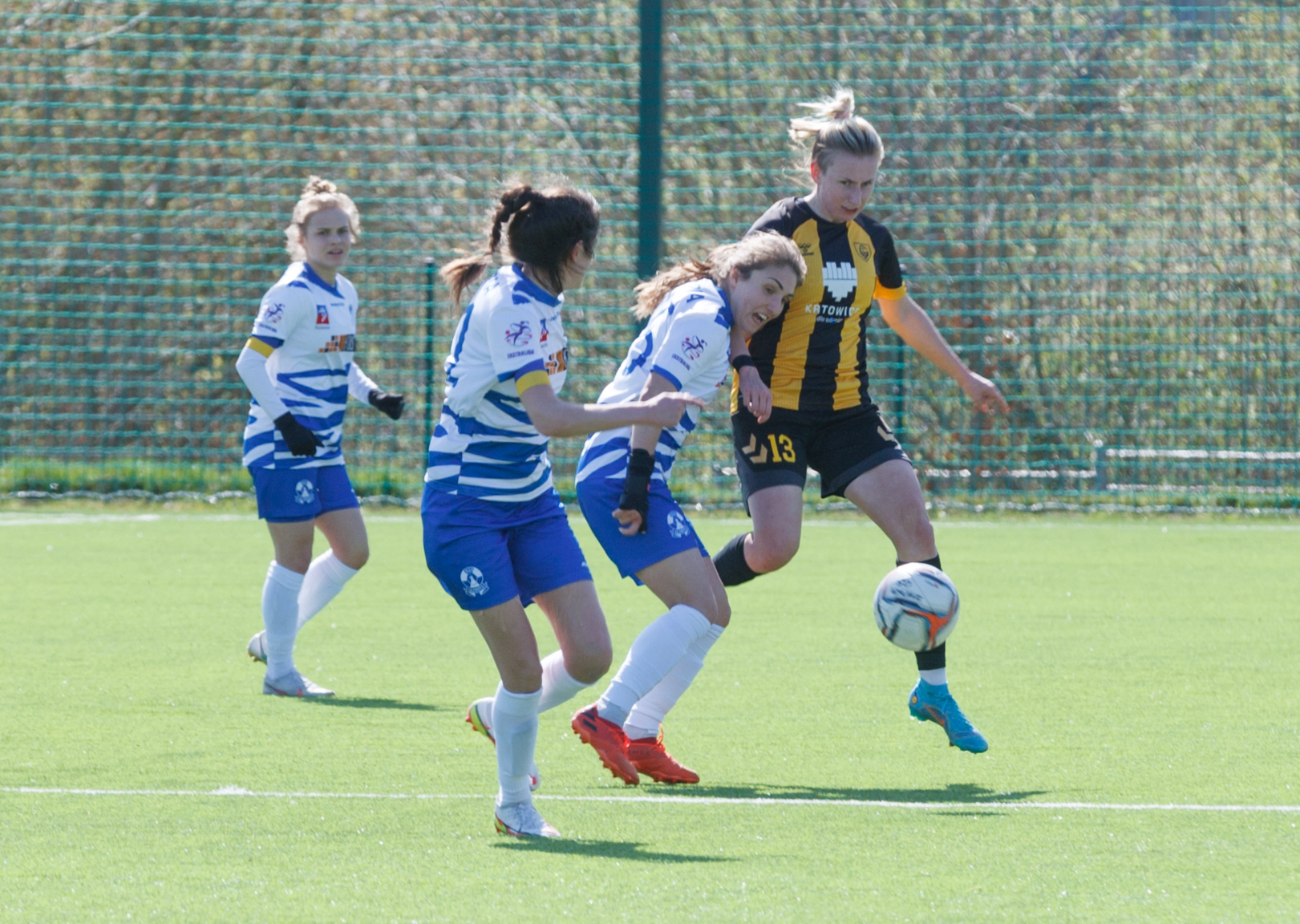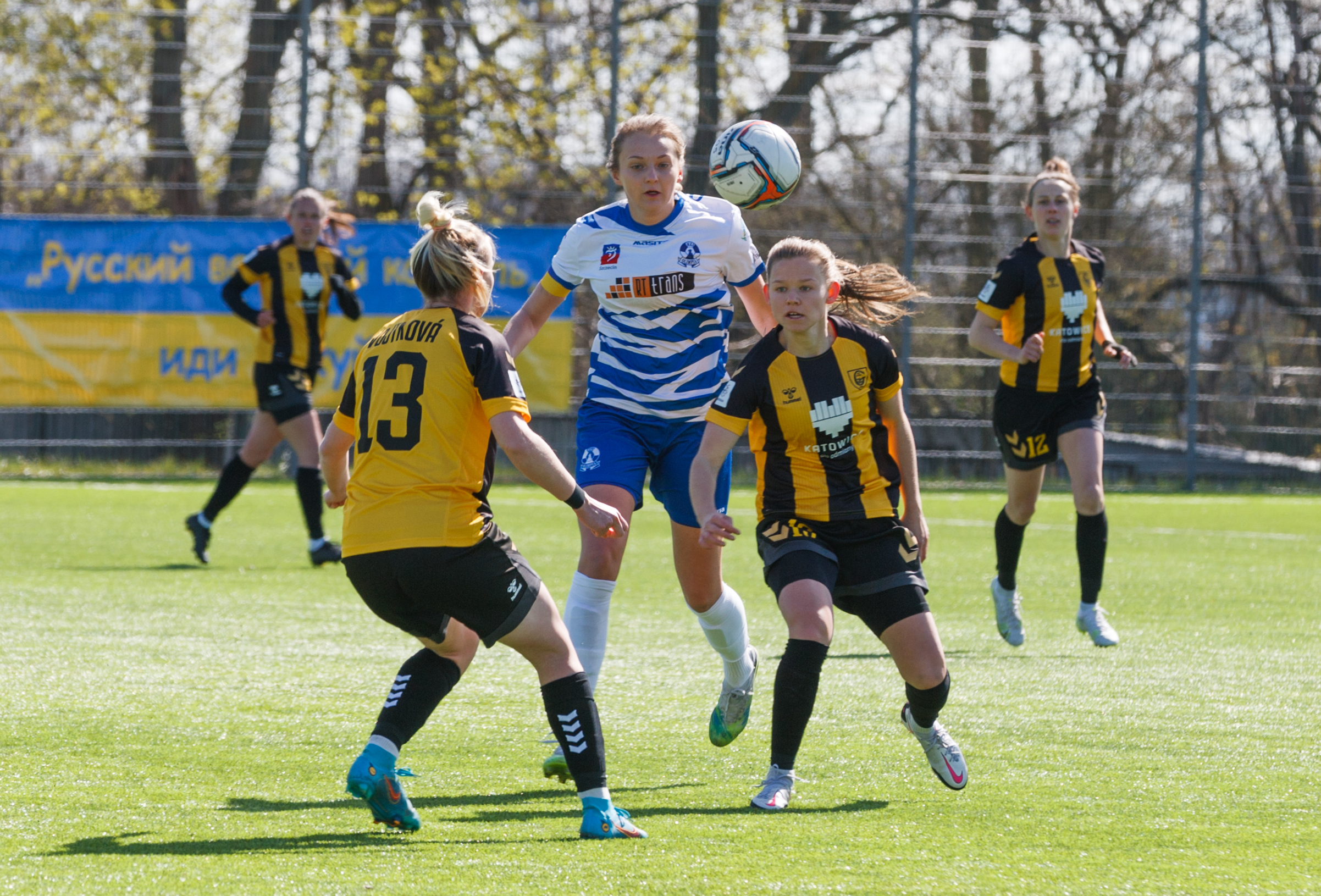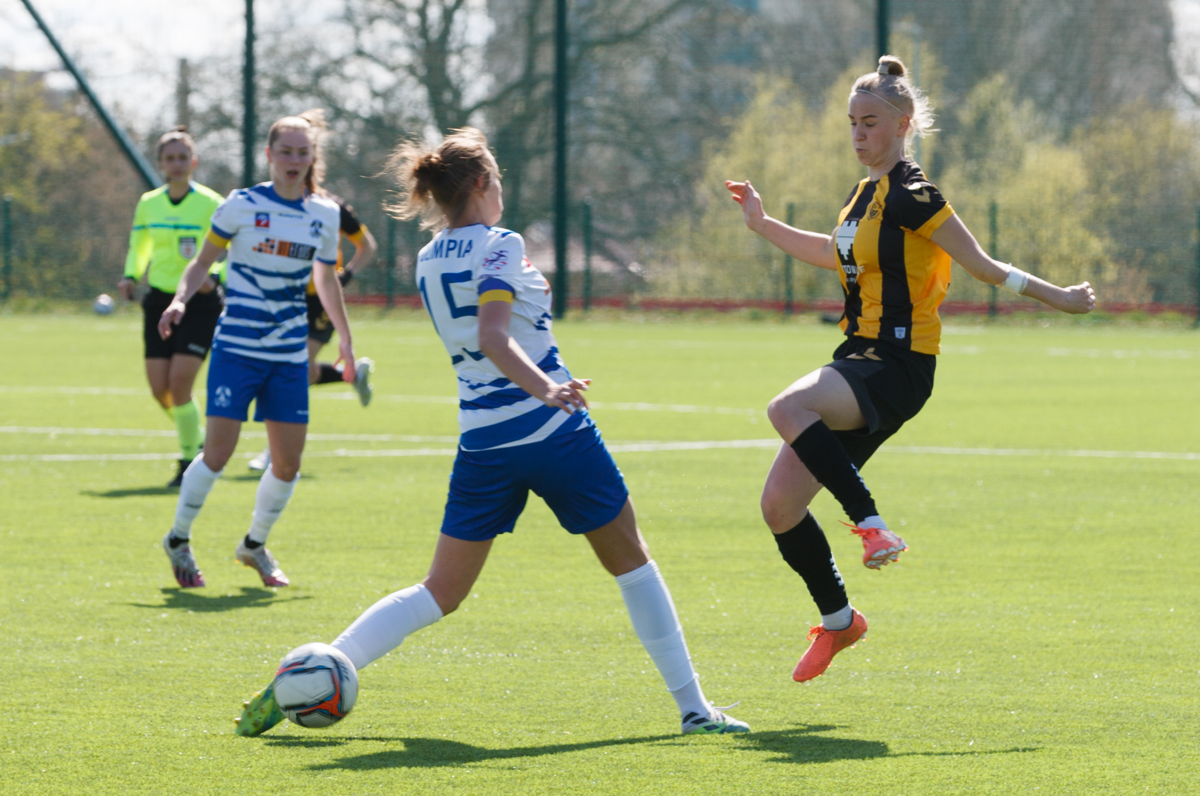 Przez pierwsze dwadzieścia minut spotkania niewiele się działo na boisku. Dopiero po rzucie rożnym w 20. minucie, skutecznym strzałem z powietrza popisała się Yana Kalinina, dla której był to pierwszy mecz w barwach Olimpii. Po tej bramce do głosu doszedł zespół gości. W 31. minucie z piłką w pole karne wbiegła Anita Turkiewicz, która oddała mocny strzał, a skuteczną dobitką popisała się Nikola Brzęczek. Jeszcze przed przerwą dobrą okazję miała Brzęczek, ale jej strzał głową nie trafił w bramkę.