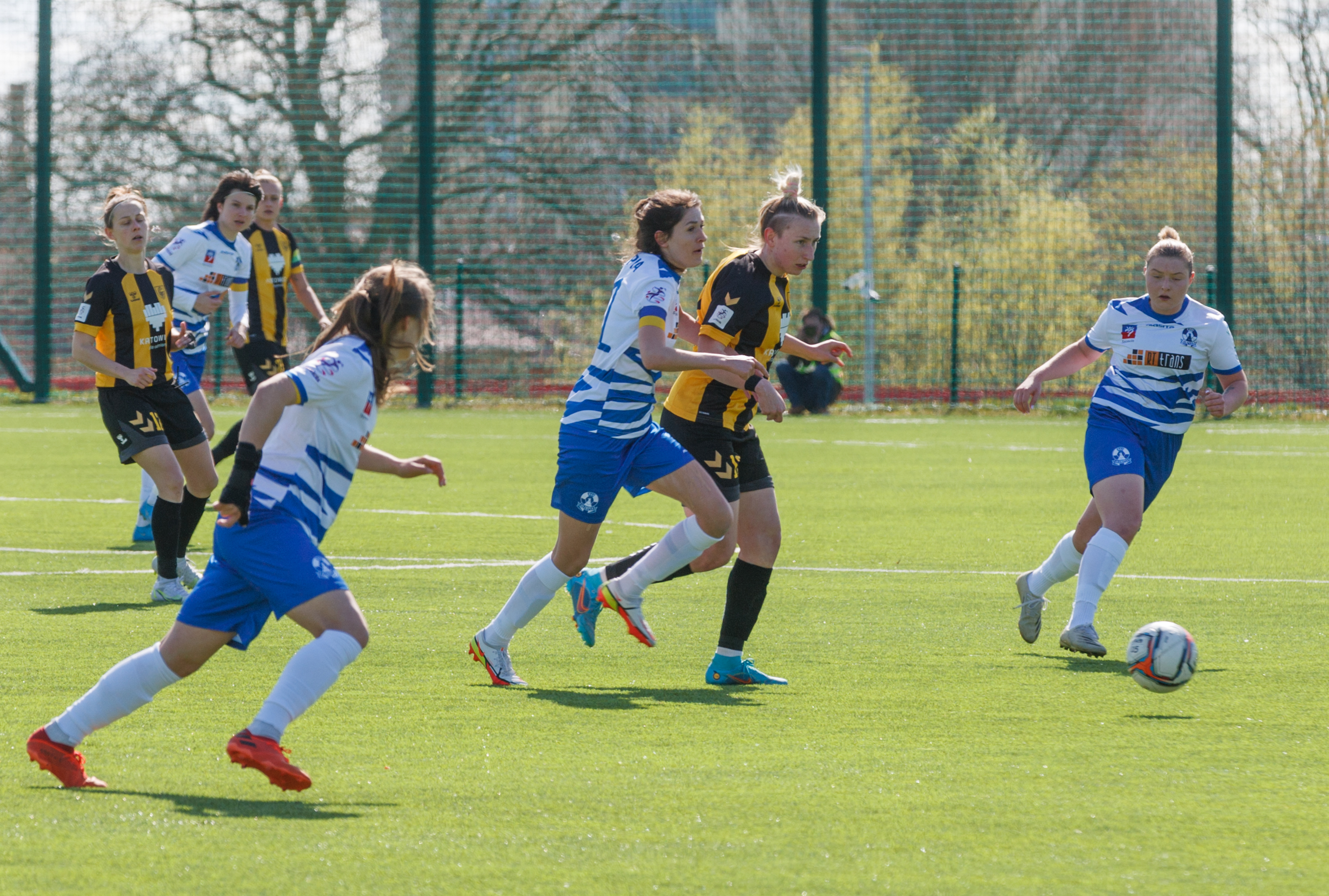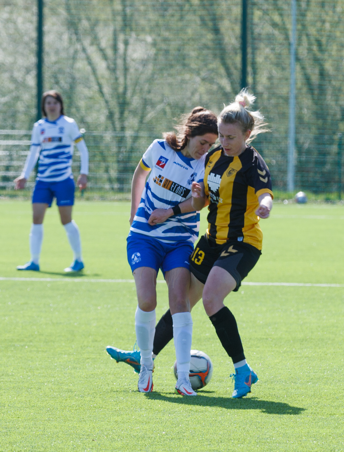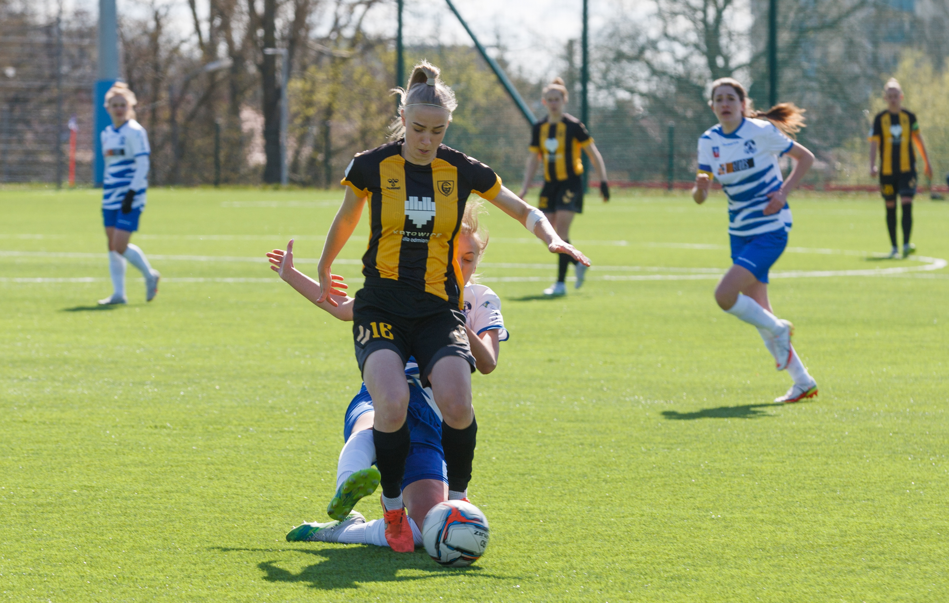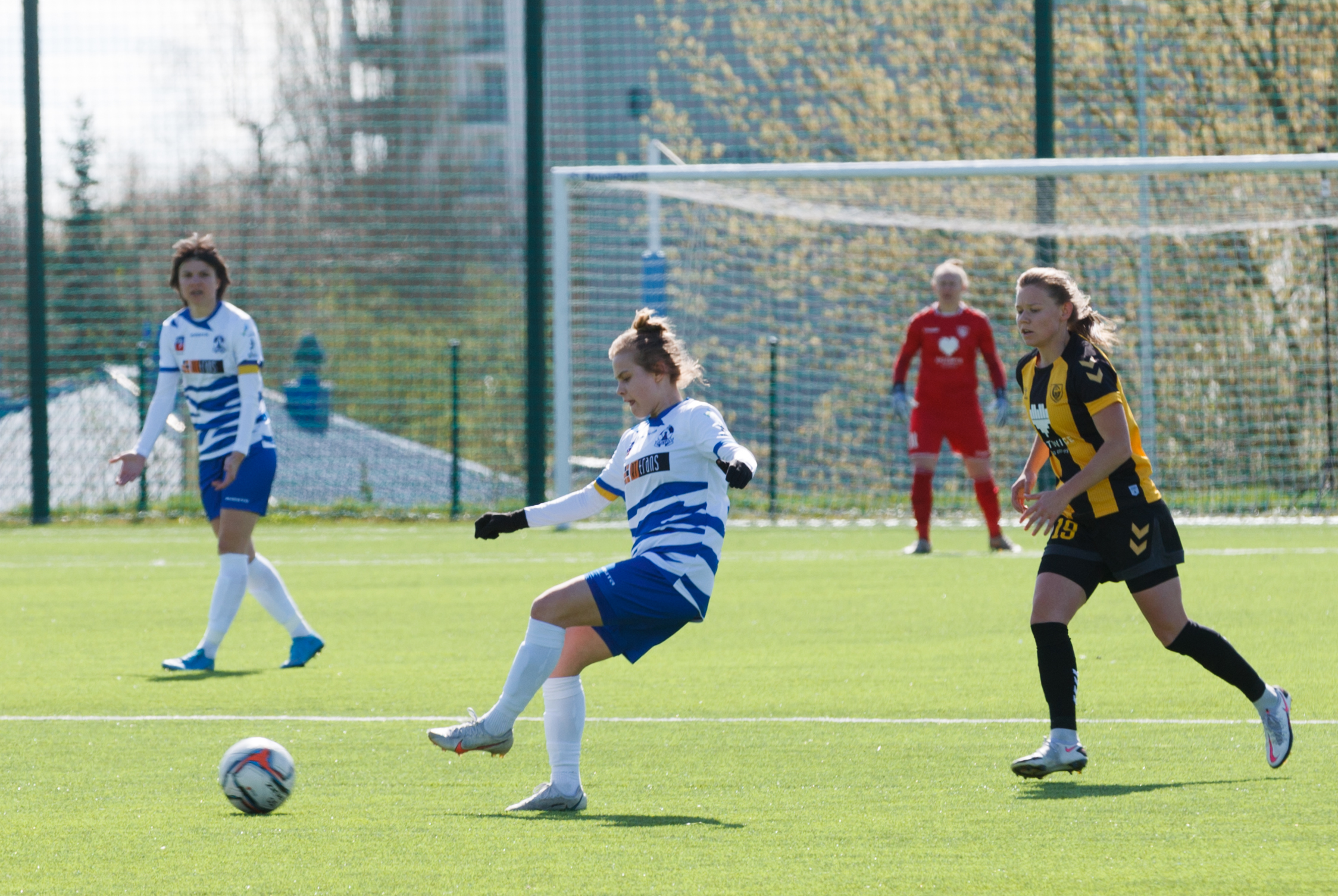 Przez pierwsze dwadzieścia minut spotkania niewiele się działo na boisku. Dopiero po rzucie rożnym w 20. minucie, skutecznym strzałem z powietrza popisała się Yana Kalinina, dla której był to pierwszy mecz w barwach Olimpii. Po tej bramce do głosu doszedł zespół gości. W 31. minucie z piłką w pole karne wbiegła Anita Turkiewicz, która oddała mocny strzał, a skuteczną dobitką popisała się Nikola Brzęczek. Jeszcze przed przerwą dobrą okazję miała Brzęczek, ale jej strzał głową nie trafił w bramkę.