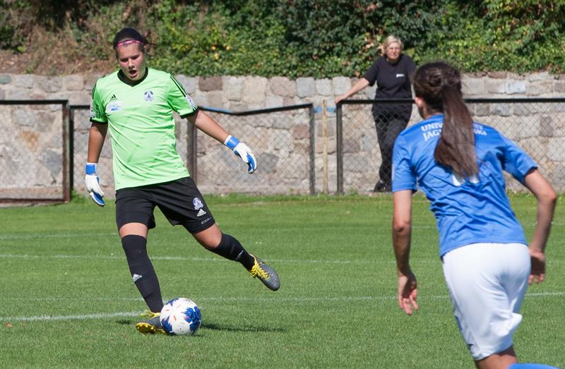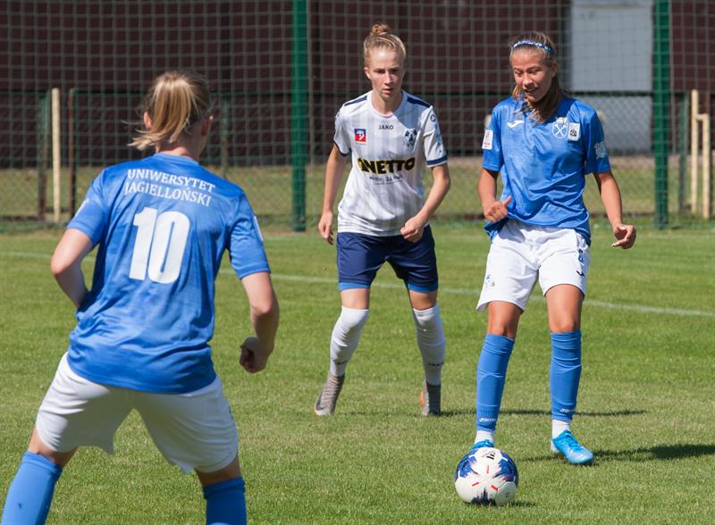 Nasze olimpijki rozpoczęły sezon od dwóch zwycięstw, ale później przegrały na wyjeździe z trzecim w tabeli GKS-em Katowice, a w sobotnie południe na własnym stadionie musiały uznać wyższość współliderujących w tabeli studentek Uniwersytetu Jagiellońskiego, chociaż spotkanie było wyrównane, a szala zwycięstwa na korzyść gości przechyliła się dopiero w końcówce.