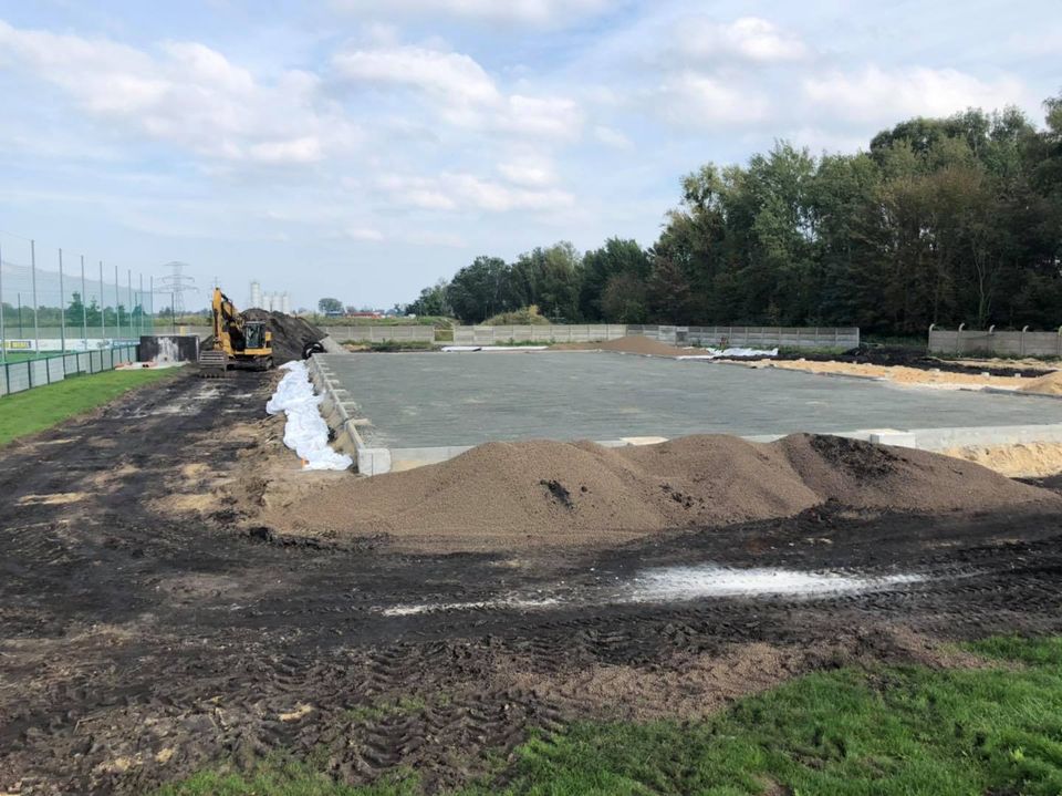 Fundamenty pod halę namiotową są praktycznie ukończone i wypełnione ostatnią warstwą tzw. zasypu. Podwaliny pod konstrukcję hali oraz przyszłą nawierzchnię boiska już są, teraz czekamy na dalsze prace i na to kiedy hala zacznie przybierać odpowiednie kształty.