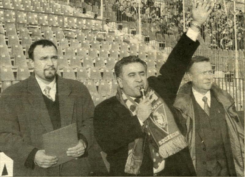 - Też pamiętam mecz w Moryniu, a sytuacja portowców w 1999 roku była nadzwyczaj trudna, bo nie tylko spadek zagrażał piłkarzom, ale i sytuacja klubu była niemal tragiczna, a wierzycieli bez liku, więc groziło nawet niedopuszczenie do rozgrywek w kolejnym sezonie. Gdy objąłem funkcję prezesa dostałem solidne wsparcie w postaci Tomasza Lachowicza, który został oddelegowany do klubu ze szczecińskiego Urzędu Miasta. Wspólnie opracowaliśmy program naprawczy finansów stowarzyszenia, zawarliśmy ugody z wierzycielami, podpisaliśmy sporo listów intencyjnych, a na horyzoncie był już inwestor strategiczny, ale jego wstępnym warunkiem było utrzymanie drużyny w ekstraklasie, co udało się spełnić z trenerem Albinem Mikulskim i to bez niepotrzebnej nerwówki w ostatnich kolejkach.