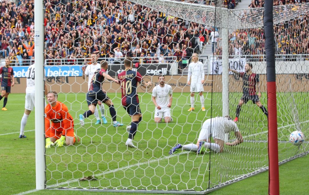 Piłkarze Pogoni Szczecin wygrali na Twardowskiego z islandzkim Knattspyrnufélag Reykjavíkur (KR Reykjavik) w pierwszym meczu I rundy eliminacyjnej Ligi Konferencji Europy i już do przerwy wywalczyli pokaźną zaliczkę przed rewanżem, który zostanie rozegrany w czwartek 14 lipca o godz. 20.15 na Islandii. Zwycięzca dwumeczu w II rundzie zmierzy się z duńskim Brøndby Kopenhaga.