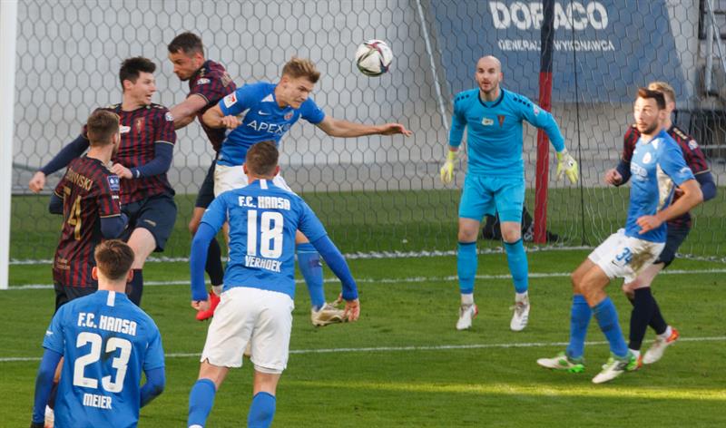 Kibice zastanawiali się też, jak spisywać się będzie grający najczęściej na środku pomocy Ormianin Biczachczjan i czy zdoła on zastąpić reprezentanta Polski Kacpra Kozłowskiego, który już zdążył zadebiutować w nowym klubie w Belgii. Zawodnik z Armenii zagrał w piątek ostatnią tercję i zdobył gola w 97 minucie, przytomnie dokładając nogę i strzelając z 10 metrów (efekt wysokiego pressingu portowców, ale bardziej nonszalancji w niemieckiej obronie). Biczachczjan szukał gry i często wychodził na pozycję, ale z reguły nie był dostrzegany przez partnerów (czyżby efekt rywalizacji o miejsce w drużynie?). Raz stracił piłkę na własnej połowie i mogło się to skończyć nawet golem. Przynajmniej na razie luki po 18-letnim kadrowiczu jeszcze nie zastąpi. Tym bardziej, że nie ma statusu młodzieżowca, a jest wymóg gry takiego zawodnika w każdym spotkaniu PKO BP Ekstraklasy. Młodzieżowcem więc z konieczności będzie defensywny pomocnik Żurawski, który z Hansą w 52 minucie zdobył gola strzałem z bliska, kończąc ładną akcję Carlosa Silvy. W konsekwencji sprzedania Kozłowskiego, wiosną Pogoń skazana więc będzie na grę dwoma defensorami w drugiej linii... ©℗