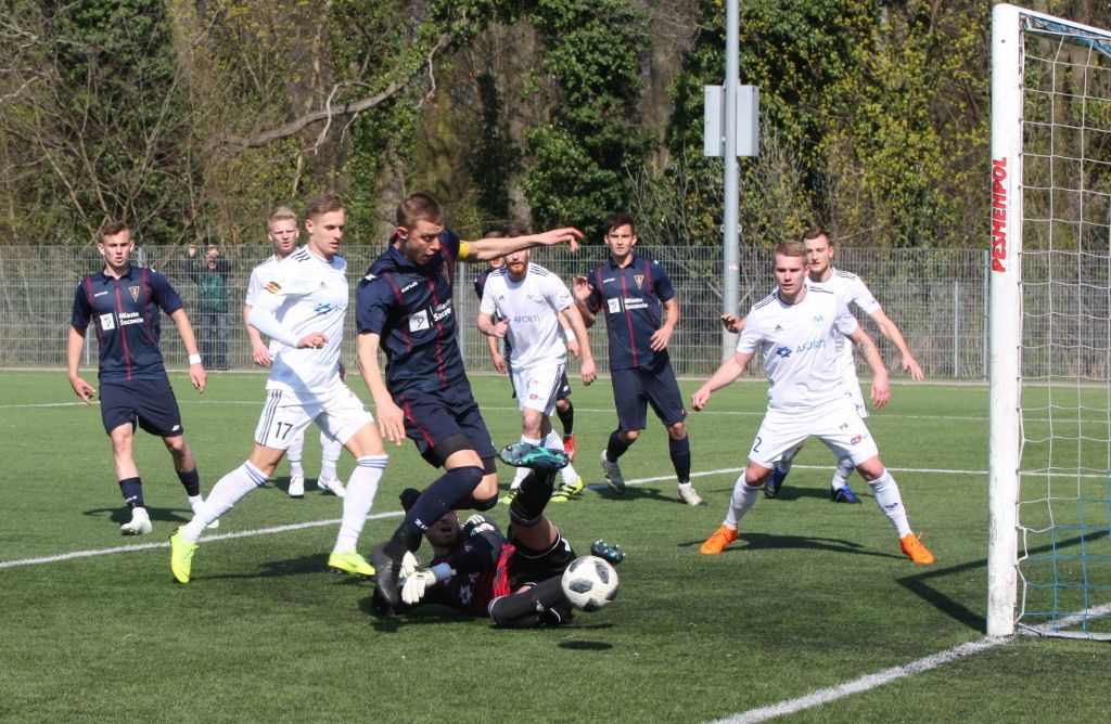 Piłkarze III-ligowych rezerw Pogoni Szczecin zaledwie zremisowali 2:2 (1:1) w meczu z wiceliderem tabeli Mieszko Gniezno. Oba gole dla miejscowych zdobył 18-letni Adrian Benedyczak.