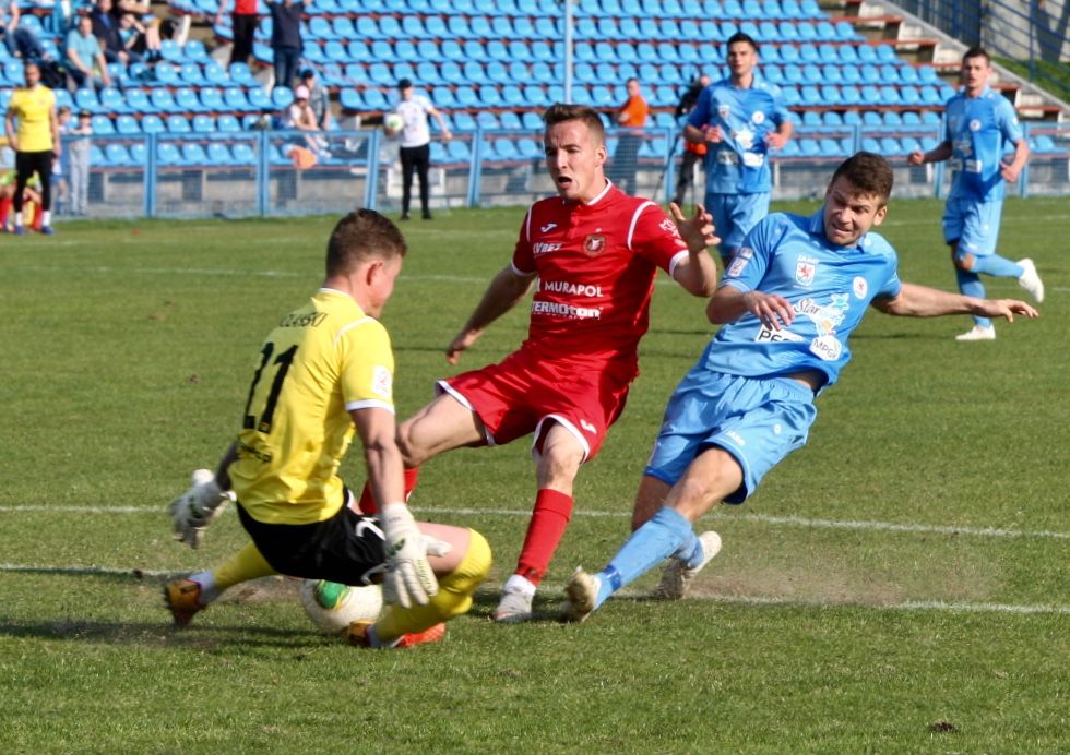 Aktywny był też Sanocki, który jednak zawodził w stuprocentowych sytuacjach. Po jednej z dobrych centr Rogali źle trafił głową w piłkę, a następnie nie wykorzystał najlepszej okazji. Znalazł się w sytuacji sam na sam, nikt go nie atakował, mógł zrobić z piłką wszystko i zachował się bardzo źle. Nie miał pomysłu na rozwiązanie sytuacji, kopnął piłkę w kierunku bramki i trafił w nią w bramkarza.