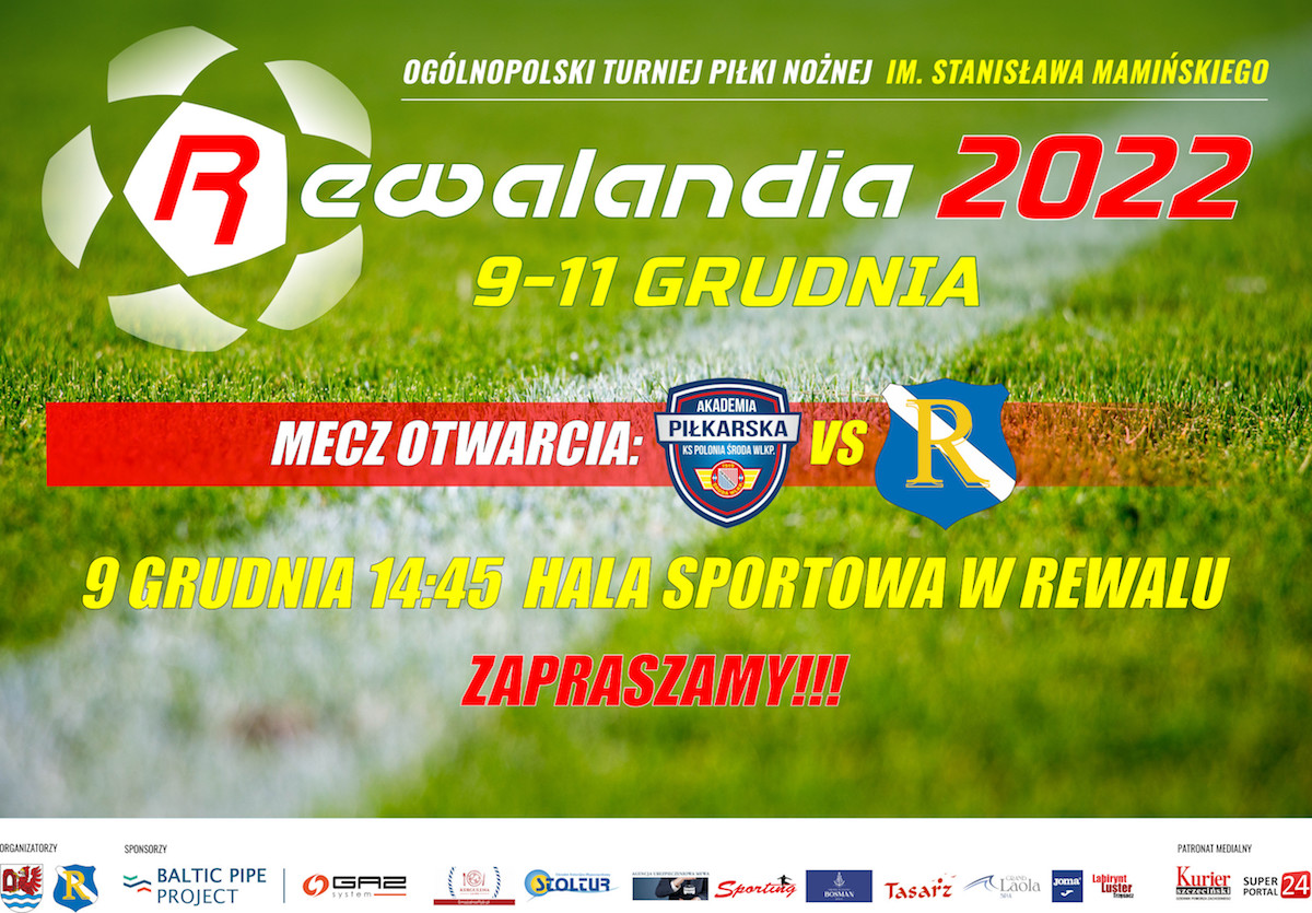 W piątek o godzinie 14.45 w hali sportowo-widowiskowej w Rewalu rozpoczyna się XXI edycja ogólnopolskiego turnieju piłki nożnej zawodników do lat 10 - Rewalandia im. Stanisława Mamińskiego. Do turnieju przystąpi 16 akademii piłkarskich z całej Polski m.in. Lech Poznań, Śląsk Wrocław, Zagłębie Lubin, Pogoń Szczecin, Warta Poznań oraz wiele innych zespołów.