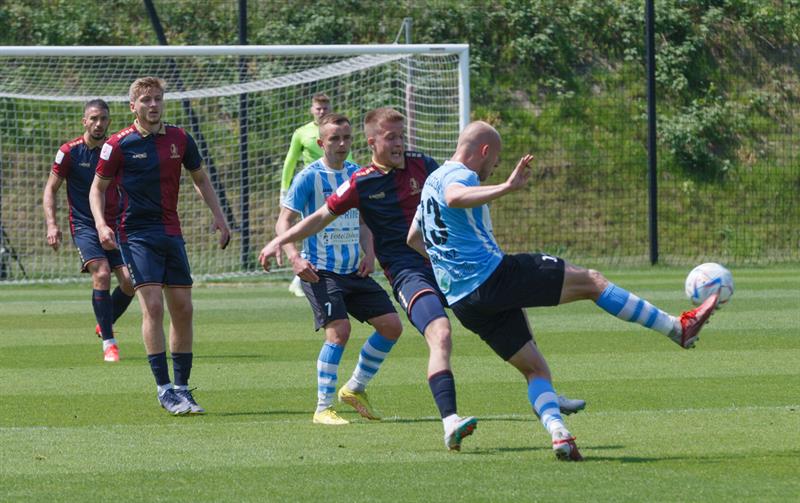 W Wałczu faworyci też szybko zabrali się do strzelania bramek. Już w 3. minucie Patryk Paczuk zdobył pierwszą bramkę dla Świtu Skolwin. O kolejne gole jednak nie było już tak łatwo i do przerwy wynik już się nie zmienił. Na samym początku drugiej części goście znów ekspresowo trafili do siatki. Tym razem na listę strzelców wpisał się Piotr Wojtasiak. Kilka minut później strzałem z 16 metrów rezultat podwyższył Szymon Kapelusz i stało się jasne, że w Wałczu nie dojdzie do niespodzianki. Wynik meczu na 0:4 ustalił Ernest Hulisz, który zdobył czwartą bramkę dla szczecinian.