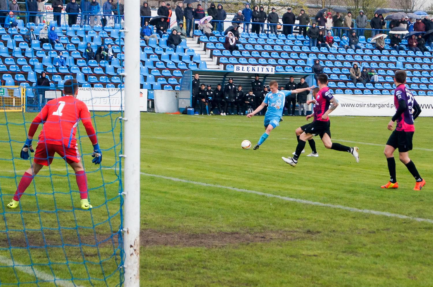 II-ligowi piłkarze Błękitnych Stargard w meczu sparingowym rozegranym w Płotach wygrali z IV-ligowym Bałtykiem Koszalin 2:1 (0:1). Bramki dla Błękitnych strzelili: Inczewski (48) oraz Mosiejko (60).