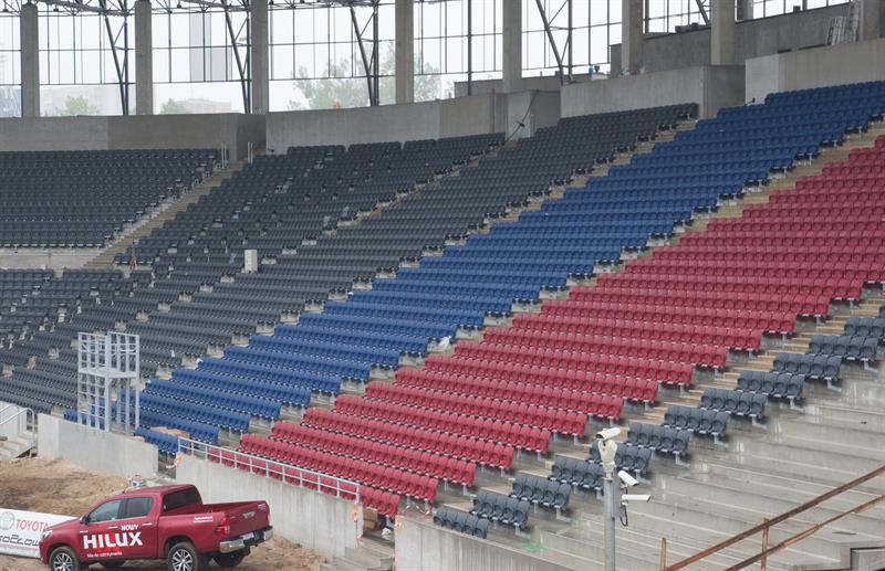 Pierwsze krzesełka na trybunie zachodniej pojawiły się na początku poprzedniego tygodnia. Od wtorku rozpoczęło się regularne układanie krzesełek, które są bardzo łatwe w montażu. Są to krzesełka typu Abacus, które funkcjonują również na stadionie Śląskim w Chorzowie. Docelowo ma ich być ponad 21 tysięcy, natomiast w pierwszym etapie niecałe 9 tysięcy.