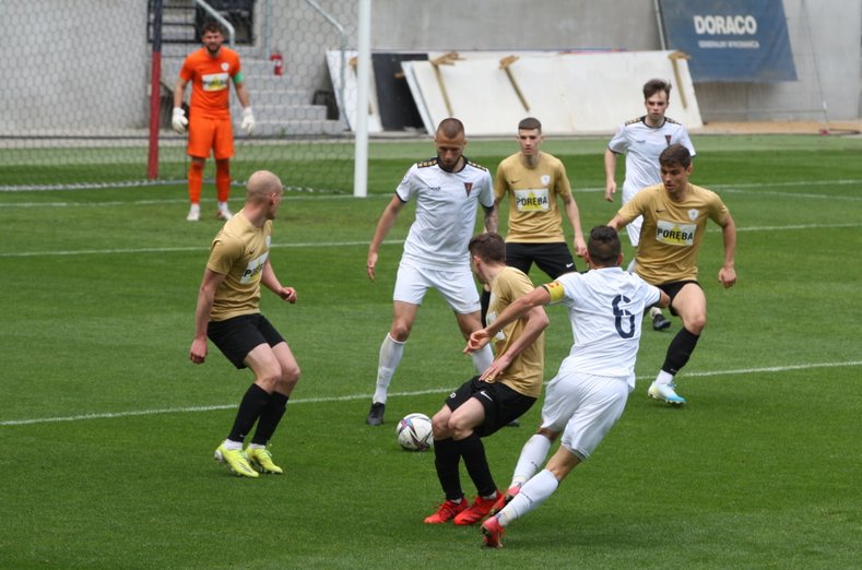 Dramatyczny mecz stoczyły zespoły z III-ligowej czołówki w Janikowie, a sędzia pokazał aż 4 czerwone kartki i kilkanaście żółtych. W 52. minucie szczecinianin Jakub Kuzko za faul przed polem karnym otrzymał czerwoną kartkę, a z rzutu wolnego Patryk Urbański dał gospodarzom prowadzenie. W 72. minucie Adrian Mach otrzymał drugą żółtą kartkę i Świt musiał grać w dziewiątkę, ale atakował i za faul na Pawle Krawcu w 85. minucie z rzutu karnego wyrównał Adam Nagórski. W 91. minucie gospodarze odzyskali prowadzenie po strzale Przemysława Kędziory, a w doliczonym czasie były jeszcze dwie czerwone kartki, po jednej dla każdej drużyny, a ukaranym piłkarzem Świtu był Oskar Potoczny.