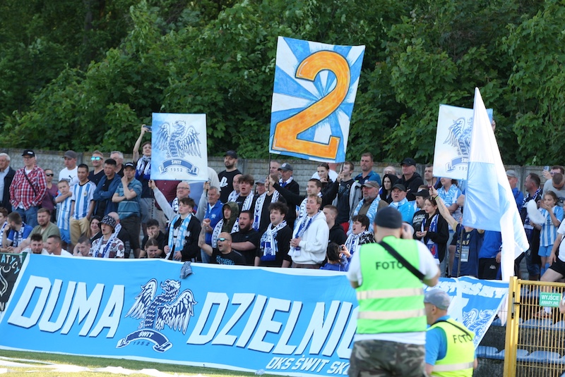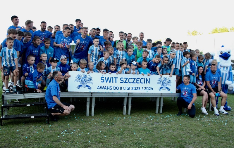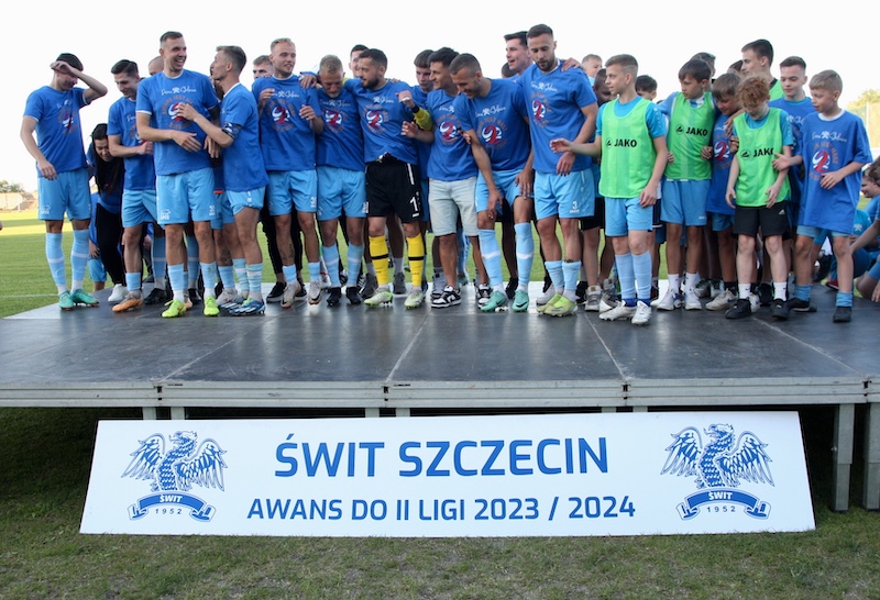 Szczeciński Świt Skolwin na cztery kolejki przed końcem sezonu zapewnił sobie mistrzostwo III ligi i II-ligowy awans, pokonując u siebie walczących o utrzymanie kaszubskich rywali.