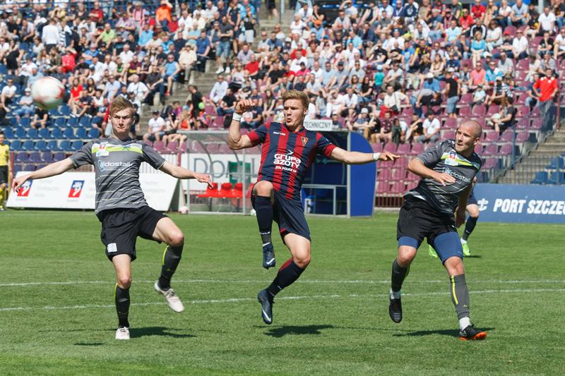 Przed przerwą najkorzystniejsza okazję miała Pogoń. Świetnie wyprowadziła kontrę, strzał oddał Maćkowski, a dobitkę Stasiaka z bliskiej odległości sparował Matłoka. 19-letni napastnik Pogoni potwierdził duże możliwości, umiejętność znalezienia się w dobrych sytuacjach, tym razem szansy nie wykorzystał, ale dobrze szedł za akcją.