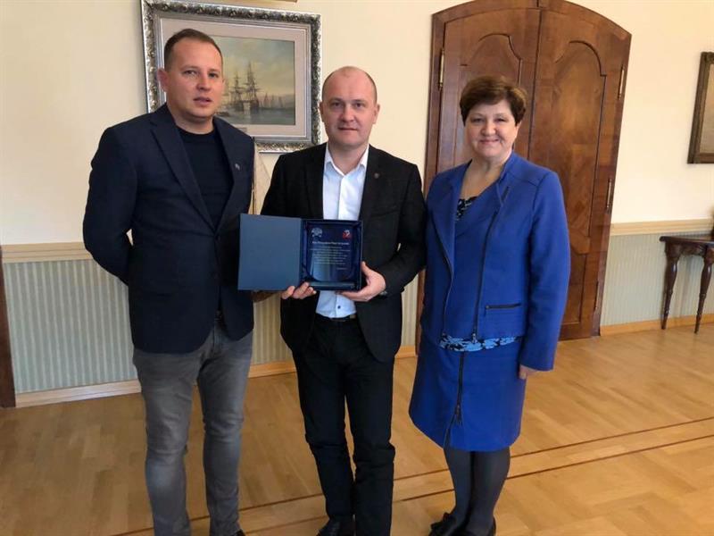 Przedstawiciele zarządu III-ligowego klubu piłkarskiego Świt Skolwin z prezesem Pawłem Adamczakiem na czele, w towarzystwie przewodniczącej Rady Miasta Szczecin Renaty Łażewskiej, gościli w gabinecie prezydenta Szczecina Piotra Krzystka.