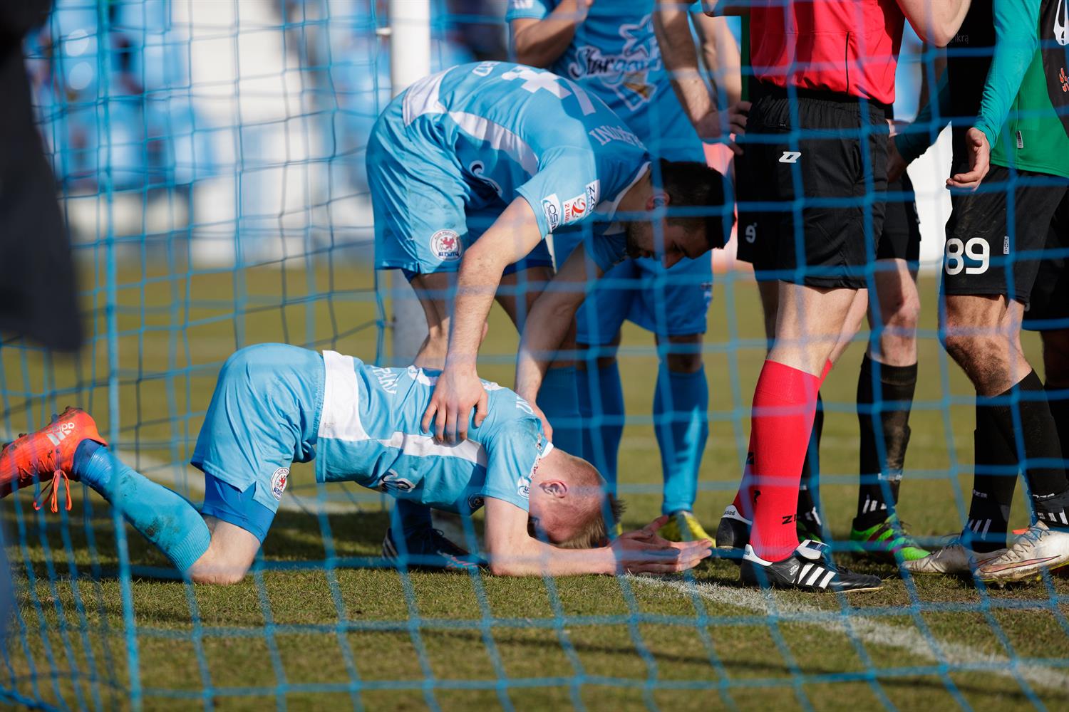 Goście nie wykorzystali szansy wygrania meczu z przeciwnikiem, który ostatnie pół godziny grał w osłabieniu. Czerwoną kartkę otrzymał wtedy Piceluk. Błękitni zdołali wyrównać po golu 17-letniego Włóki, ale w ostatniej minucie stracili gola z rzutu karnego.