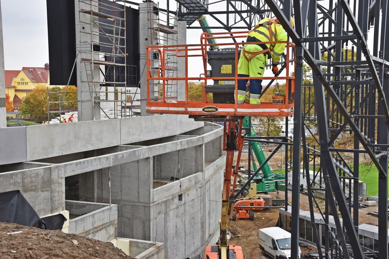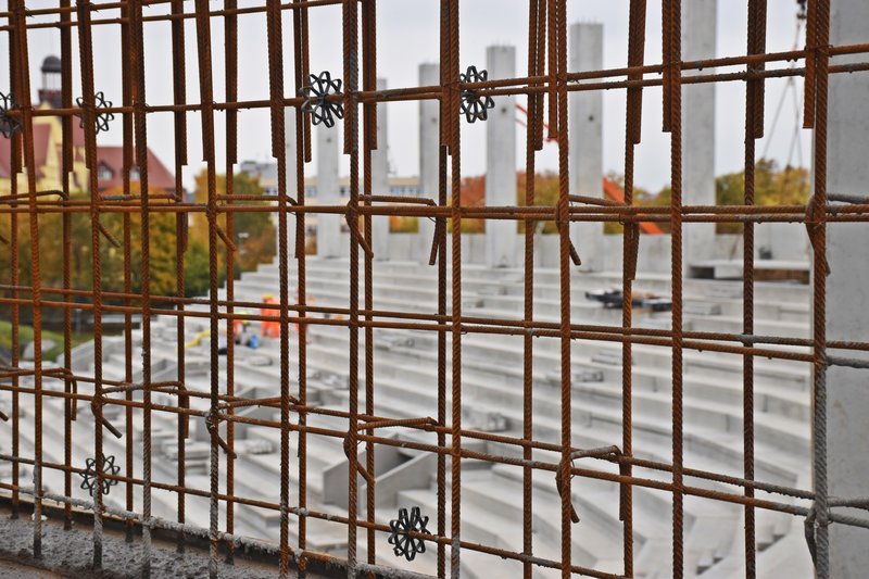 Perspektywa widoku na Stadion Miejski przy ul. Twardowskiego, na którym swoje ekstraklasowe mecze rozgrywają piłkarze Pogoni Szczecin, z nowej trybuny robi wrażenie. Szkielet nowego obiektu jest już praktycznie gotowy. Prace toczą się także na koronie kompleksu.