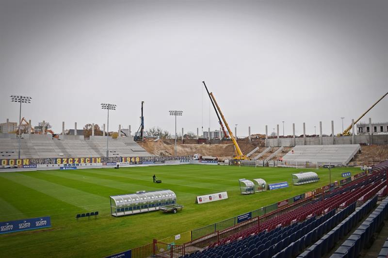 Najbardziej widoczne prace, toczą się przy nowych trybunach. W minionych dniach na trybunie zachodniej oraz na łuku wykonywane było palowanie. Wykonawca montował także belki audytoryjne oraz same audytoria. Dzięki temu trybuna zachodnia nabiera docelowego kształtu.