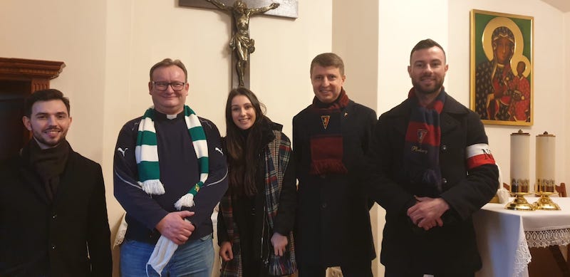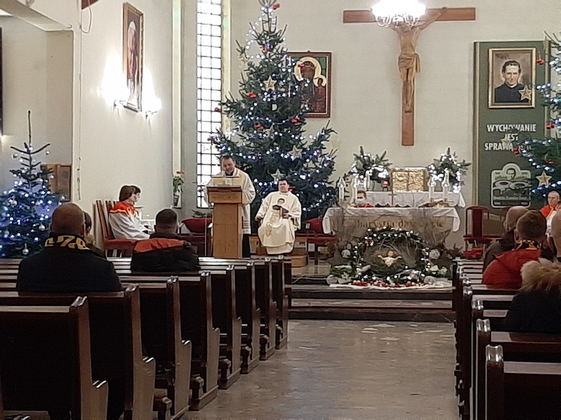 Kibice Pogoni wysłali kilkuosobową delegację do Częstochowy, a kilkadziesiąt osób, w większości w klubowych barwach, uczestniczyło w Mszy Świętej pielgrzymkowej w kościele pw. Św. Jana Bosko, którą odprawił ks. Mateusz Kopaniecki. W trakcie uroczystości kibice portowców poświęcili swoje szaliki i modlili się o pomyślność i jak najlepsze wyniki dla piłkarzy, trenerów i działaczy Dumy Pomorza. ©℗