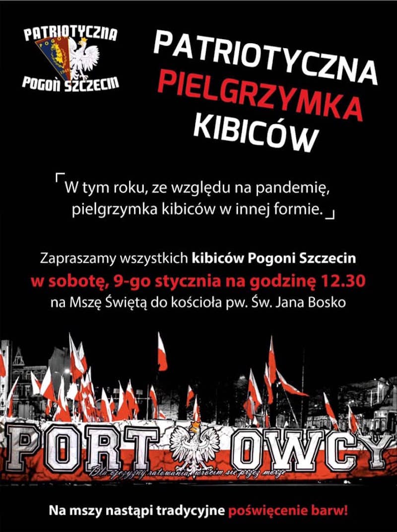 W tym roku ze względu na pandemię i związane z nią obostrzenia, XIII Patriotyczna Pielgrzymka Kibiców na Jasną Górę przybrała wyjątkową formę, a jak co roku aktywnie uczestniczyli w uroczystościach fani Pogoni Szczecin.