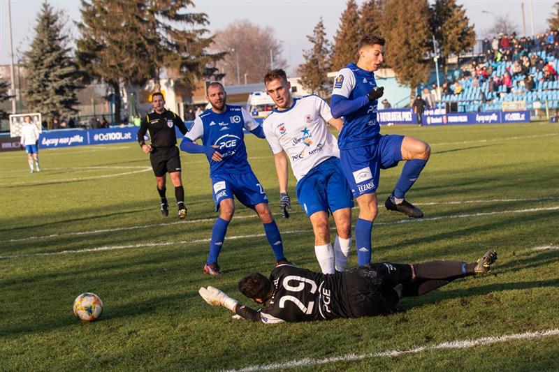 Grząska murawa sprawiła, że mało było rozgrywania piłki od tyłu i składnych koronkowych akcji z wieloma podaniami, a za to dominowały długie przerzuty i szybkie ataki. W takich warunkach I-ligowiec z Mielca nie potrafił zdominować niżej notowanego przeciwnika.