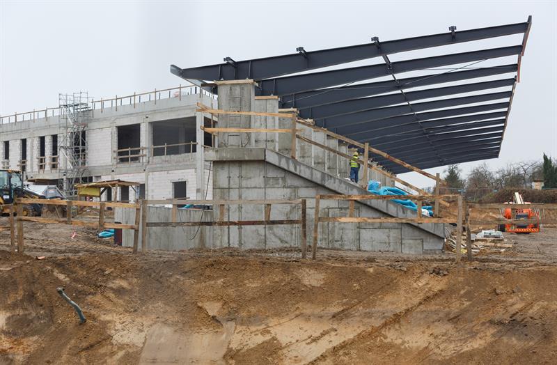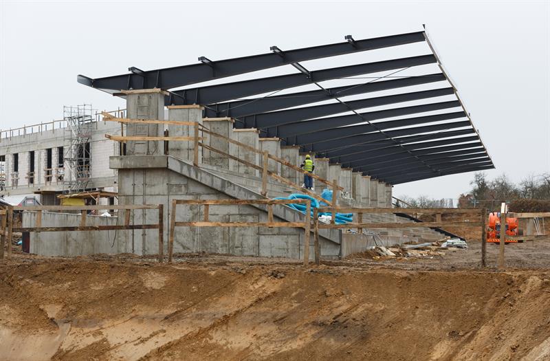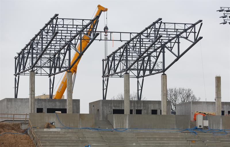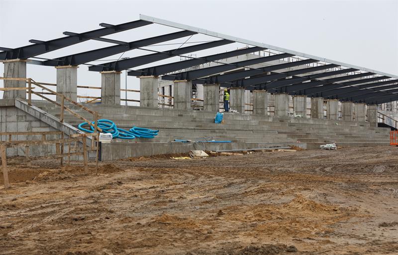 Na koronie stadionu za trybuną południową powstało pięć nowych pawilonów. Wykonawca wciąż prowadzi przy nich prace. Te toczą się także w budynku Centrum Szkolenia Dzieci i Młodzieży, gdzie wykonywane są instalacje elektryczne i sanitarne. W najbliższym czasie wykonawca przystąpi do prac związanych z wykonaniem tynków mineralnych oraz pierwszych prac przy stolarce okiennej.