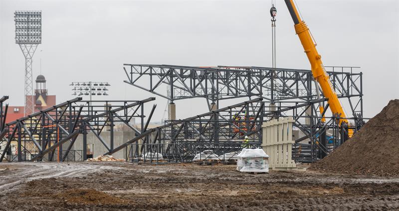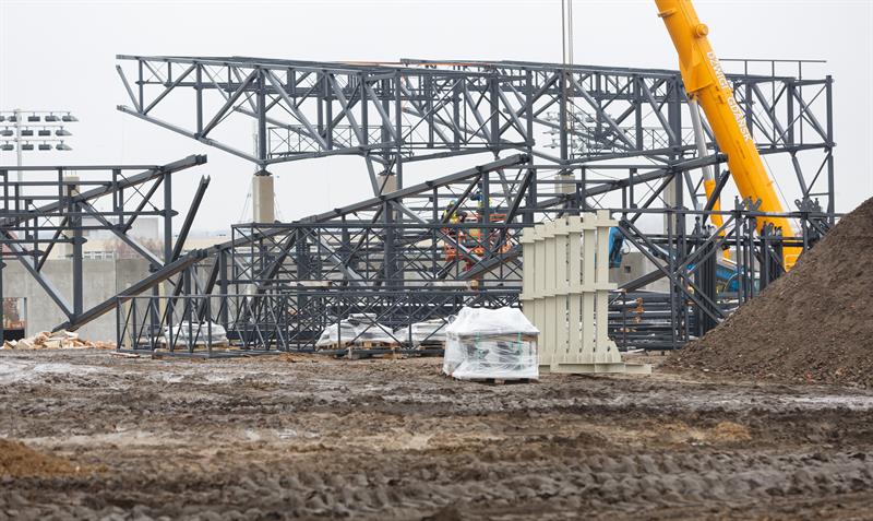 Rozpoczęła się również instalacja stalowych elementów zadaszenia trybuny nr 3. Na tym boisku swoje mecze rozgrywać będą zespoły rezerw i juniorów. Boisko wraz z gotową i w pełni zadaszoną trybuną ma być gotowe na pierwsze oficjalne mecze w przyszłym roku.