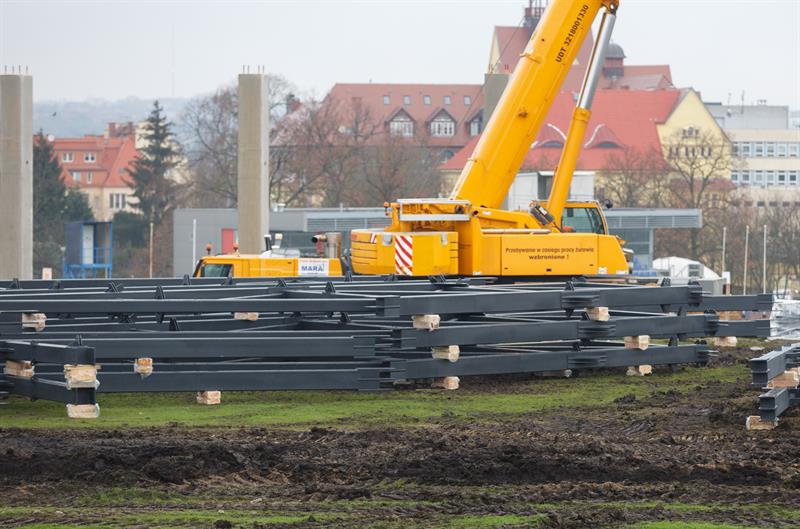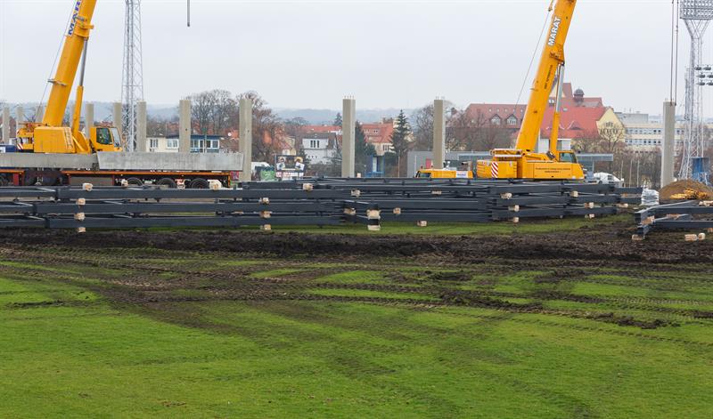 Wykonawca rozpoczął również montaż elementów zadaszenia. Pojawiły się pierwsze konstrukcje nad jedną z trybun. Każdy dzień na budowie Stadionu Miejskiego pod względem realizowanych robót jest bardzo intensywny. Postęp prac i zmiana krajobrazu z tego wynikająca są coraz lepiej dostrzegalne. Stadion pnie się do góry.