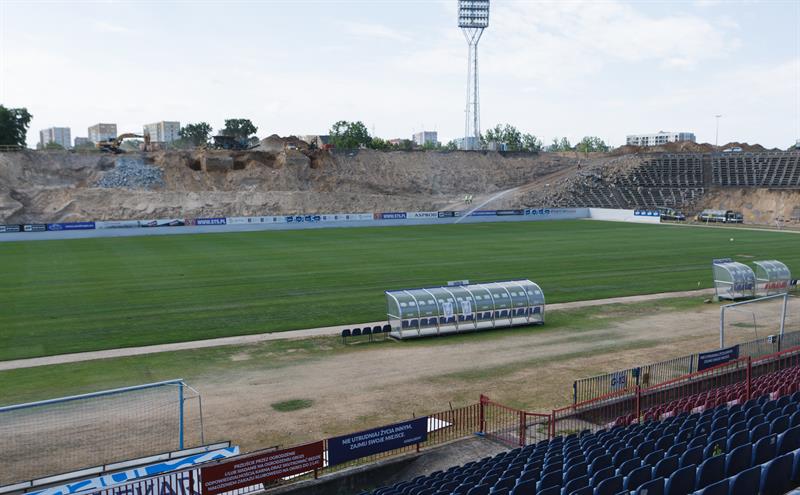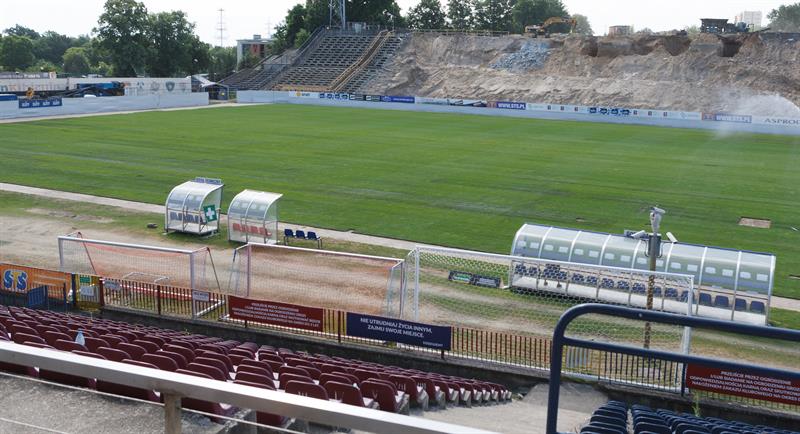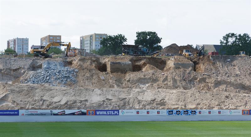 Na obiekcie przy ul. Twardowskiego kontynuowane są również prace rozbiórkowe i roboty ziemne na trybunie południowej, gdzie natrafiono na sporych rozmiarów konstrukcje betonowe. Sporo dzieje się także na boisku nr 3, gdzie również Wykonawca realizuje roboty ziemne.