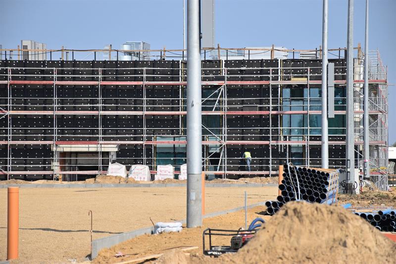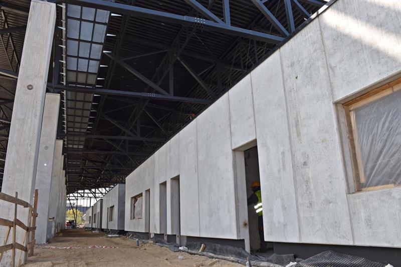 W budynku Centrum Szkolenia Dzieci i Młodzieży realizowane są prace przy stolarce okiennej, wykonywane są ściany działowe, układane są tynki i wykonywane gładzie na ścianach. Trwa wykonywanie podkładów podłogowych tzw. jastrychów oraz montaż instalacji klimatyzacji i wentylacji.