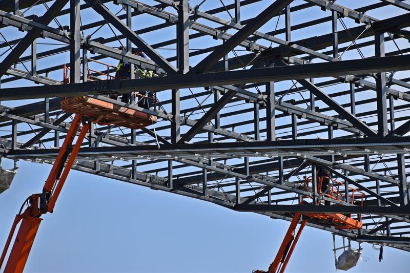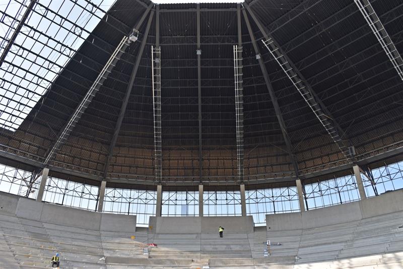Niezmiennie toczą się prace instalacyjne wewnątrz pawilonów. Z narożnika trybuny południowej i zachodniej wywożona jest ziemia. Jednocześnie toczą się prace projektowe dla konstrukcji fundamentów łuku południowo-zachodniego oraz północno-zachodniego.