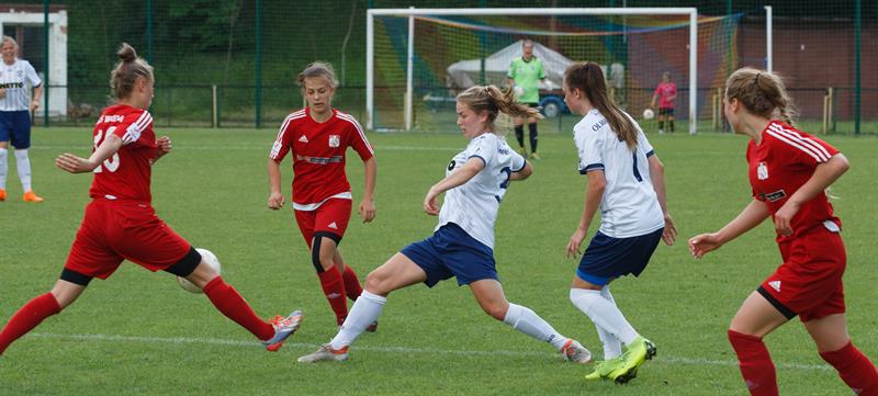 Na zdjęciu: Piłkarki Olimpii (w białych koszulkach) w drugiej połowie strzeliły wrocławiankom sześć bramek.