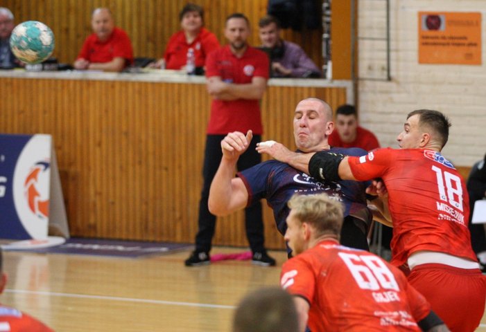 Od początku spotkania dominowali gospodarze, a prym wiódł Paweł Krupa, który w pierwszym kwadransie zdobył pięć bramek. Goście nie pozostawali w tyle i utrzymywali kontakt z przeciwnikiem, ale na przerwę schodzili z jednobramkową stratą.