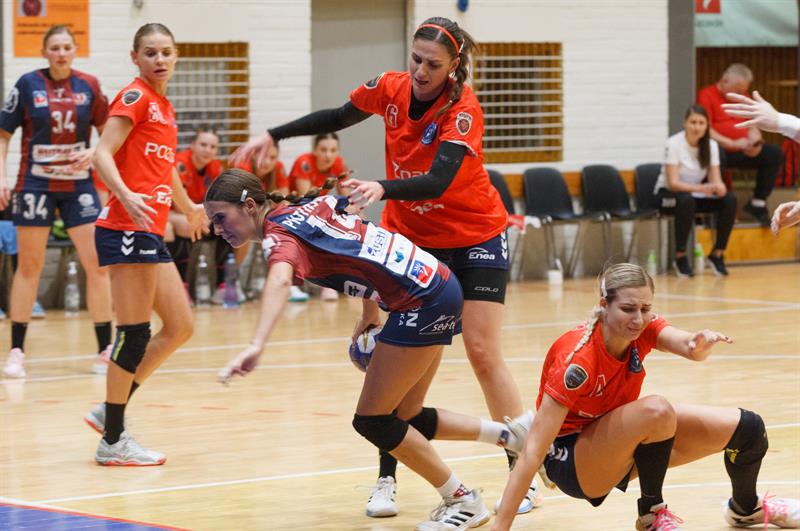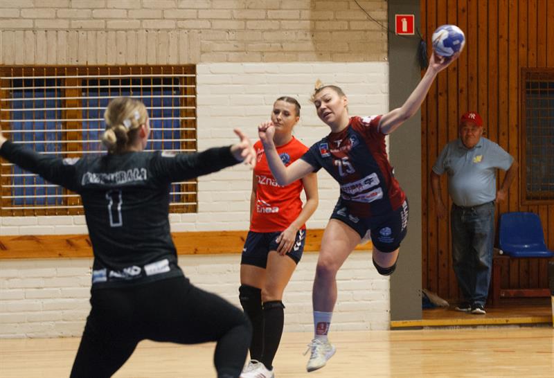 Do 20. minuty spotkanie oscylowało wokół remisu, a wynik zmieniał się kilka razy. Z dwóch stron mieliśmy dużo strat i niedokładności, ale lepsze wrażenie sprawiał zespół Pogoni. Końcówka pierwszej połowy to dobra gra szczecinianek, a bardzo słaba zespołu z Poznania, co zaowocowało przewagą czterech bramek. Do przerwy piłkarki ręczne Pogoni powinny prowadzić wyżej, ale Zuzanna Zimnicka nie wykorzystała rzutu karnego.
