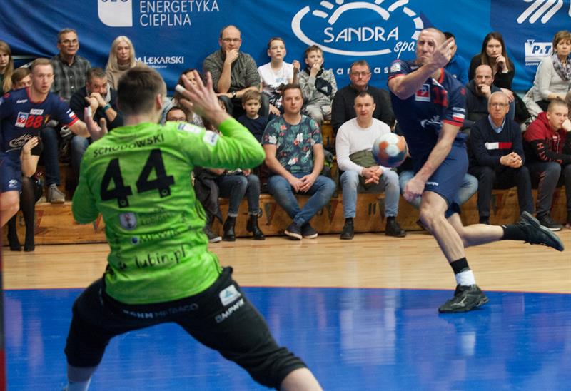 Piłkarze ręczni ze Szczecina w przypadku wygranej mieli zapewniony awans do najlepszej ósemki. Głogowianie stoją w zdecydowanie trudniejszej sytuacji, ale do meczu z Sandrą przystąpili dużo bardziej zmotywowani. Przed przerwą mieli przewagę. W drużynie Sandry duży problem z przebiciem się przez strefę rywala miał Horiha. Przed przerwą nie zdobył bramki. Wynik trzymał Biernacki, który najczęściej decydował się na rzuty.