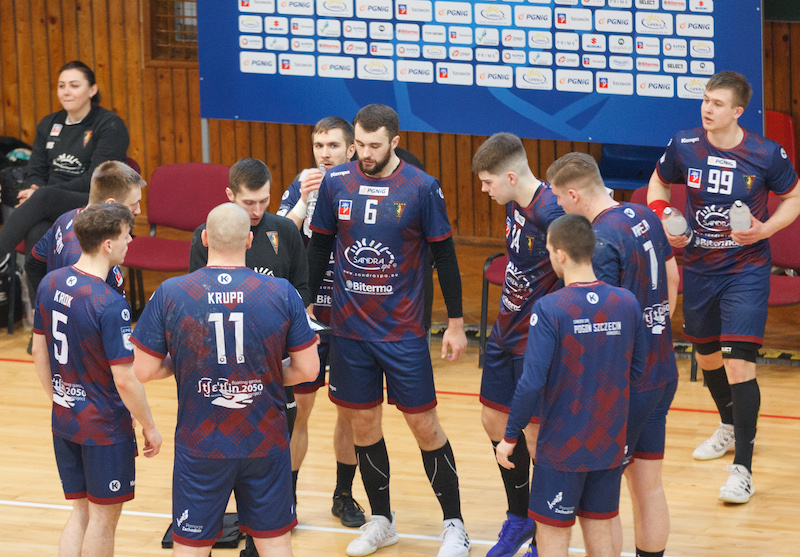 Początek spotkania należał do gości, ale doping 300-osobowej szczecińskiej publiczności sprawił, że po 20 minutach ekipa spod znaku Sandry, grająca agresywnie i często karana wykluczeniami, odrobiła straty. Po zmianie wśród szczecinian w roli głównej wystąpił Paweł Krupa, który strzelał i zarabiał też rzuty karne, aż Pogoń uzyskała 3-bramkowe prowadzenie. Niestety, szczecinianie stracili podstawowego obrońcę, gdyż Starcević w 51. minucie otrzymał czerwoną kartkę z gradacji kar, a Unia zdołała wyrównać. W dramatycznej końcówce Pogoń, rozgrywająca najlepsze w tym sezonie spotkanie w obronie, objęła jednobramkowe prowadzenie. W ostatnich sekundach Unia miała jeszcze rzut karny, ale piłka rzucona już po końcowej syrenie trafiła w słupek i zwycięstwo stało się faktem, a wygrana sprawiła, że podopieczni trenera Wojciecha Jedziniaka nie są już czerwoną latarnią tabeli. (mij)