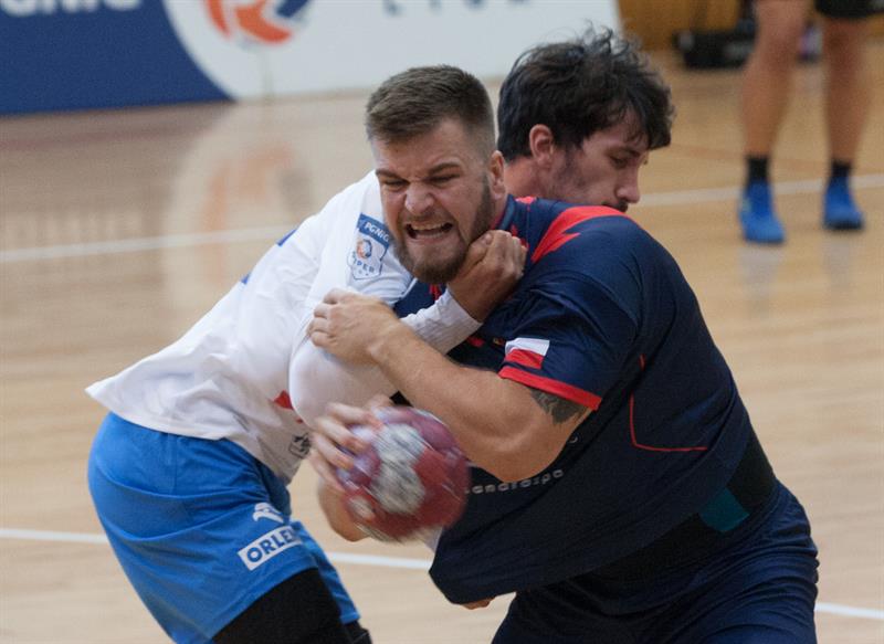 Pogoń miała w tym meczu grać uważnie w defensywie i nie forsować tempa w ataku. Szczecinianie przeprowadzili wprawdzie kilka szybkich ataków wykończonych rzutami skrzydłowych, ale w ataku pozycyjnym grali wolno. Okazji do zdobywania bramek szukali głównie w rzutach z dystansu i sztuka ta udawała się m.in. Krupie i Matuszakowi.