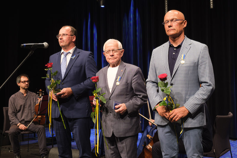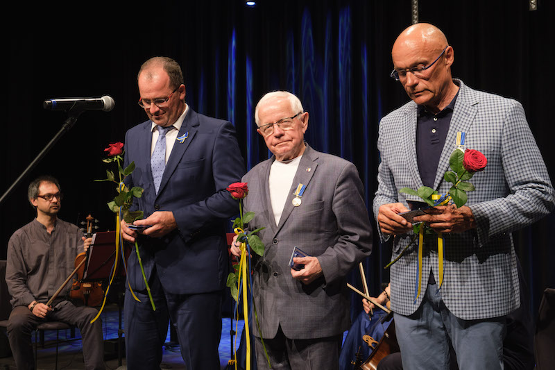 W poniedziałek w szczecińskim Domu Kultury Krzemień w ramach Dnia Ukraińskiego na festiwalu Sacrum Non Profanum odbyła się sympatyczna uroczystość nadania medali od Rady Prezydenckiej Wołodymyra Zełenskiego, które wręczał konsul honorowy Ukrainy w Szczecinie Henryk Kołodziej, a odznaczenia przyznano 6 osobom (choć zaangażowanych w pomoc było znacznie więcej) za uratowanie kadry młodzieżowej Ukrainy w pływaniu.