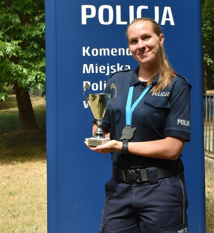 Na zdjęciu: St. sierżant Katarzyna Jędruch z KMP w Świnoujściu prezentuje zdobyte trofeum.