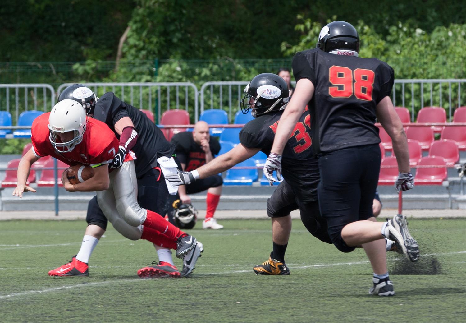 W rozrywanym w upalnym słońcu meczu I ligi futbolu amerykańskiego, w sobotę na boisku przy ul. Witkiewicza zespół Cougars Szczecin uległ Wilkom Łódź 14:55 (8:15, 6:6, 0:12, 0:22).