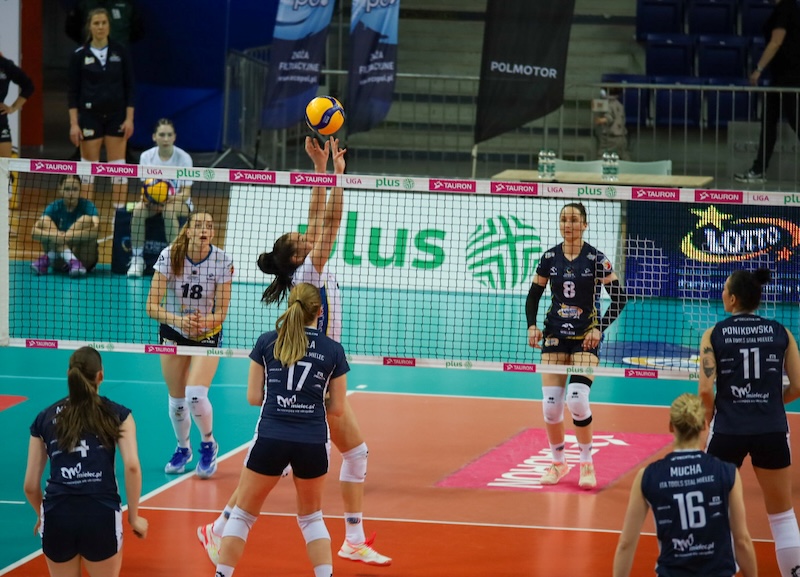 W drugim secie liderkę Stali Kazałę wsparły Sieradzka i środkowa Milewska, a Grajber-Nowakowska mogła liczyć tylko na pomoc Hewelt. Obie drużyny popełniały mało błędów w ataku, ale Stal była dużo skuteczniejsza w bloku i wyrównała wynik meczu.