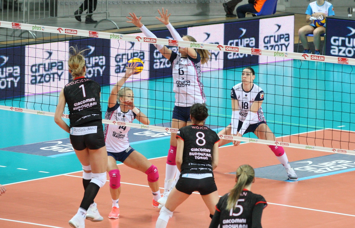Chemik: Werblińska, Bednarek-Kasza, Veljković, Wołosz, Smarzek, Zaroślińska, Krzos (libero) oraz Gajgał-Anioł, Blagojević, Bełcik.