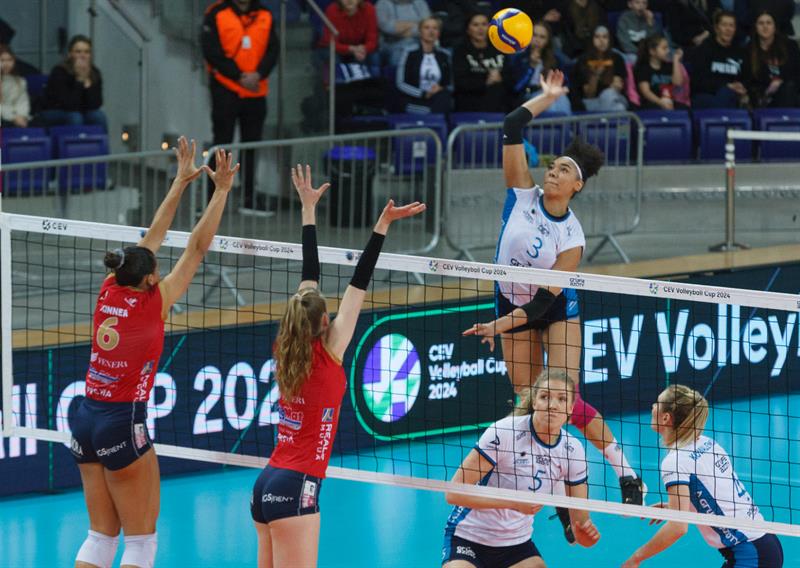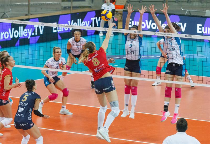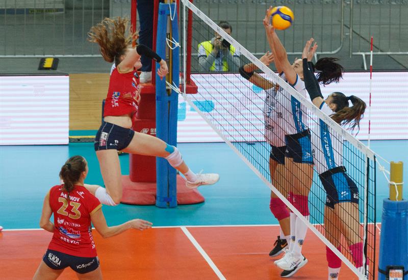 Dwumecz play-off o awans do ćwierćfinału Pucharu CEV siatkarek rozstrzygnął się już po dwóch pierwszych setach rewanżowego pojedynku w Netto Arenie na niekorzyść policzanek, a ostatecznie po prawdziwym maratonie w czwartym secie, spotkanie zakończyło się zwycięstwem włoskiej drużyny po tie-breaku.