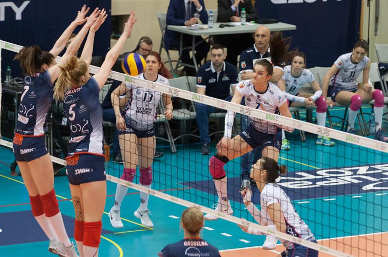 Pierwszy mecz półfinałowy miał sporo zwrotów akcji. Łodzianki dzięki skutecznej zagrywce rozstrzygnęły pierwszą partię na swoją korzyść. Przez cały mecz niezwykle groźny był także blok łodzianek, w którym królowała Kąkolewska.