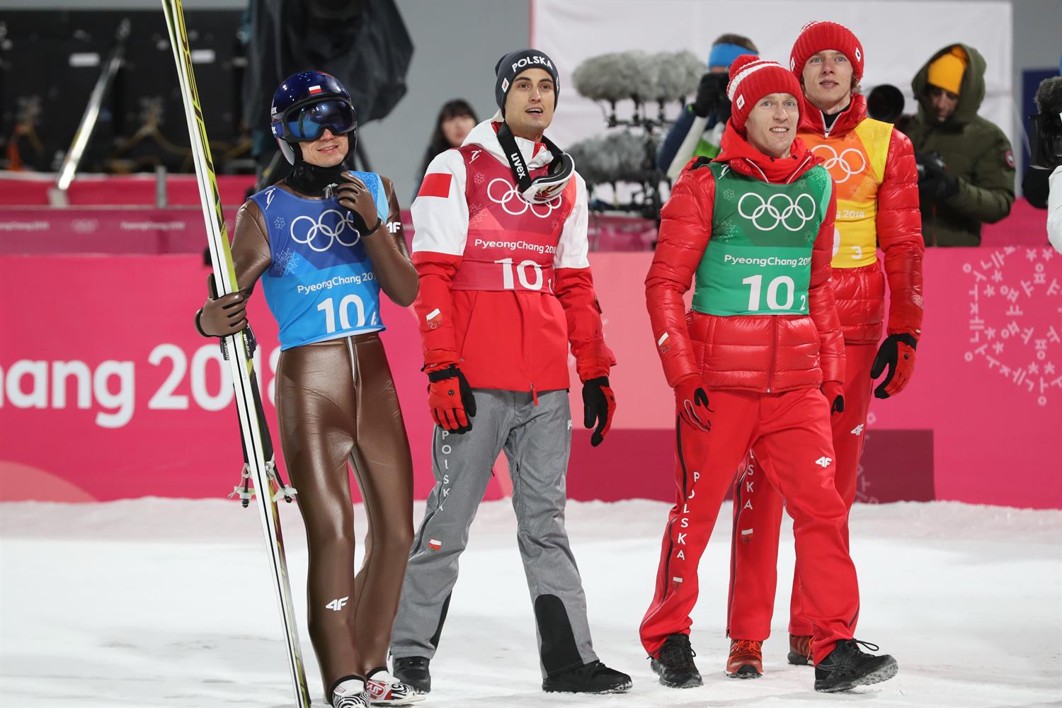Polska zdobyła brązowy medal w drużynowym, olimpijskim konkursie skoków narciarskich na dużym obiekcie w Pjongczangu. Zwyciężyła Norwegia. Na drugiej pozycji uplasowała się ekipa Niemiec. Polacy wystąpili w składzie: Maciej Kot, Stefan Hula, Dawid Kubacki i Kamil Stoch.