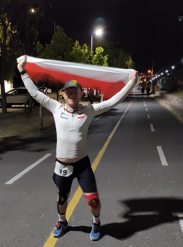 – Uzyskany przeze mnie czas to niespełna 255 godzin, a więc dziesięć i pół dnia, a wszystko rozpoczęło się od pływania na basenie, co zajęło niecałą dobę. Dodam, że jedynie w tej pierwszej konkurencji czas był limitowany. Mieliśmy do przepłynięcia 38 kilometrów, ale oceniam, że zrobiłem nadróbkę i pokonałem dystans o dwa kilometry dłuższy. Wynikało to stąd, że nie było profesjonalnych sędziów, a mierzeniem tego, kto ile przepłynął, zajmowały się meksykańskie dzieciaki, stawiając na kartce kreski po każdorazowym nawrocie na pływalni. W moim przypadku te kreski były dość dziwne, to znaczy było ich za mało, bo sympatyczni najmłodsi arbitrzy kilka lub więcej razy zapomnieli zapisać moje nawroty… Z basenu taksówkami przejechaliśmy do miejskiego parku na dalszy ciąg rywalizacji, a kolarskie 1800 kilometrów pokonywaliśmy na 7-kilometrowej trasie woków wspomnianego parku, w centrum którego było malownicze jezioro. Park nie był zamknięty na czas imprezy, więc szczególnie w niektórych porach dnia było tam sporo pieszych i rowerzystów. Na pięćdziesiąt kilometrów przed kolarską metą na mojej drodze stanęło właśnie trzech rowerzystów, całkowicie tarasując przejazd, a mocno już zmęczony nie zdołałem się zatrzymać ani ich wyminąć i wjechałem w jednego. Trochę się poturbowałem i uszkodziłem rower, ale na szczęście niegroźnie. Dodam, że na rowerze miałem też nocny wypadek, bo wyładowały mi się lampki i gdy nagle przede mną wyrosła z ciemności ścianka, musiałem awaryjnie położyć swój jednoślad, by się o nią nie rozbić. Wspomnę jeszcze, że czasami trzeba było walczyć z organizmem, by nie zasnąć podczas jazdy. Na zakończenie ostatnią konkurencją był zaś bieg na 422 kilometry, na tej samej płaskiej trasie wokół parku. Dodatkowym wyzwaniem był fakt, że ścigaliśmy się na wysokości 1800 metrów ponad poziomem morza, co wymagało żelaznej wydolności, a temperatura dochodziła do 35 stopni Celsjusza. Do tej morderczej rywalizacji zapisało się 11 osób, a zmagania ukończyło 9, wycofał się Rosjanin, który przez długi czas liderował, ale jego ciało odmówiło posłuszeństwa.