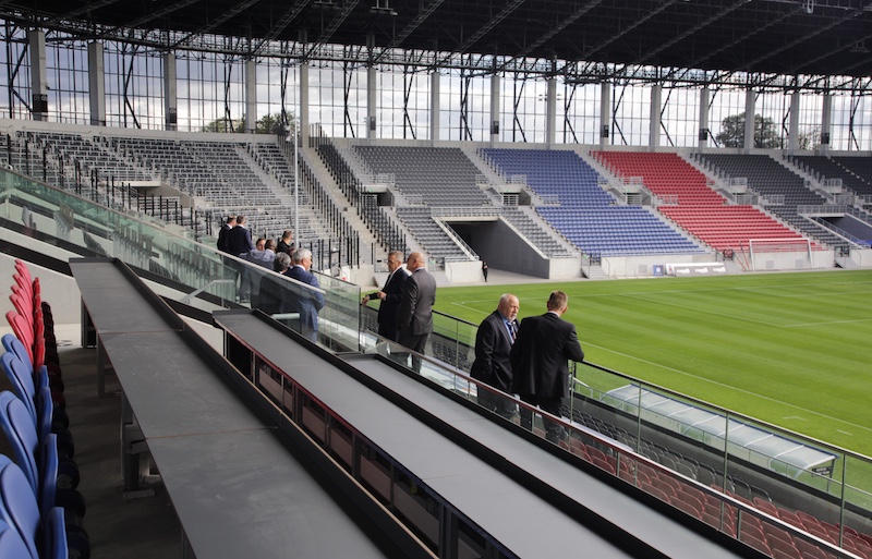 Trybuny oddawano do eksploatacji etapami; najpierw zachodnią i południową, na ostatni mecz z Lechem Poznań – wschodnią i dwa narożniki, w tym sektor dla kibiców gości, a teraz oddano do użytku cały stadion, już z północną trybuną oraz VIP-owską oraz z całym zapleczem socjalno-bytowym. Budowa zakończyła się w sierpniu, ale dopiero we wrześniu dokonano wszystkich potrzebnych odbiorów i podpisano stosowne protokoły.